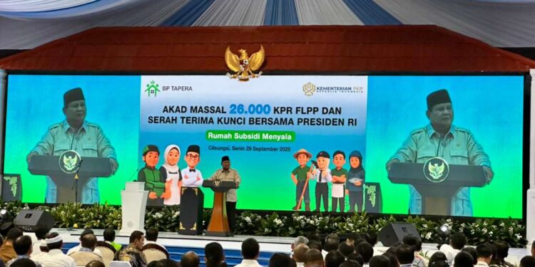 Redaksi Banten, JAKARTA – Bank Rakyat Indonesia (BRI) melalui Region 7 Jakarta 2 turut berpartisipasi dan menghadiri kegiatan Akad Massal 26.000 KPR Fasilitas Likuiditas Pembiayaan Perumahan (FLPP) serta Serah Terima Kunci Rumah Subsidi yang dihadiri langsung oleh Presiden Republik Indonesia, Prabowo Subianto, pada Senin 29 September 2025 lalu.