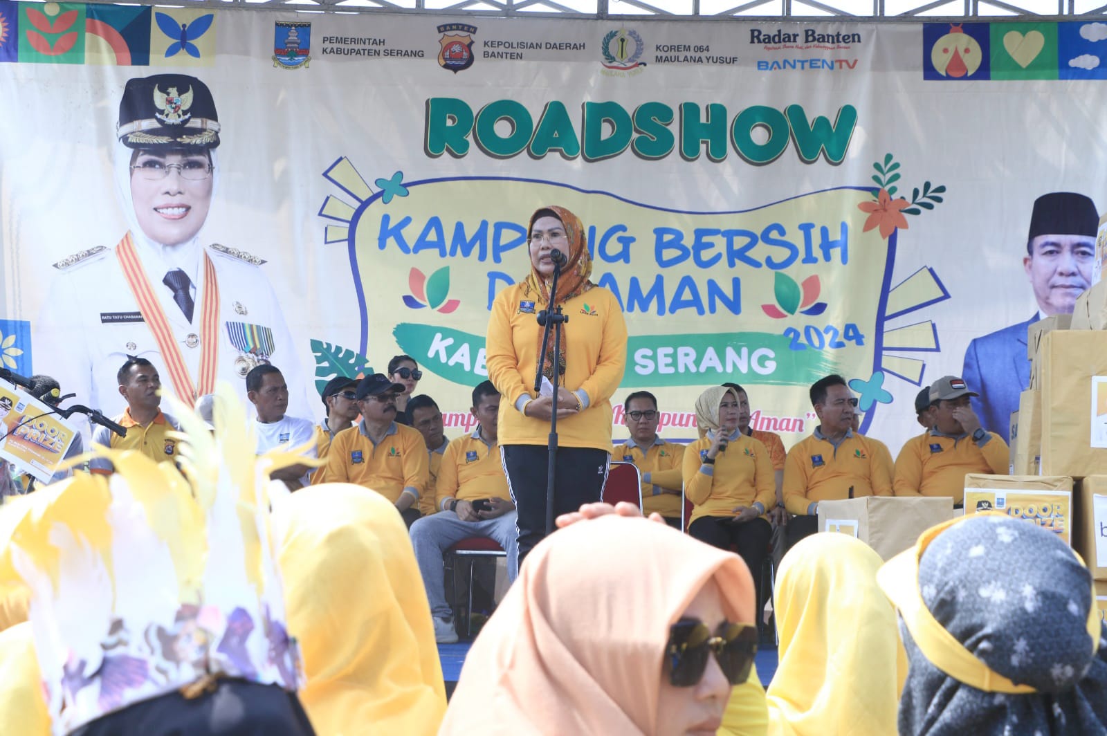 Redaksi Banten – Bupati Serang Ratu Tatu Chasanah menutup Roadshow Lomba Kampung Bersih dan Aman (LKBA) Tahun 2024 di Lapangan Pondok Pesantren (Ponpes) Modern Shohibul Muslimin Kecamatan Tunjung teja pada Rabu, 31 Juli 2024. Selanjutnya, tim juri akan turun ke lapangan pada 5 Agustus sampai September 2024 untuk melakukan penilaian.