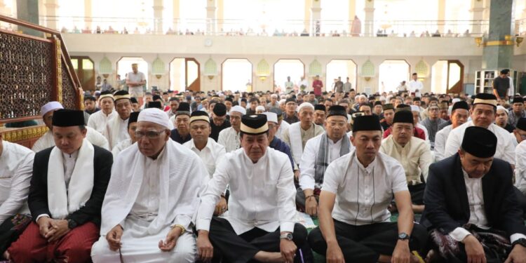 Redaksi Banten–Bupati Tangerang, Moch. Maesyal Rasyid bersama Wakil Bupati Tangerang, Intan Nurul Hikmah menghadiri dan melaksanakan Salat Idul Adha 1446 Hijriah di Masjid Agung Al-Amjad, yang berlokasi di Kompleks Pusat Pemerintahan Kabupaten (Puspemkab) Tangerang. Jumat, (6/6/25)