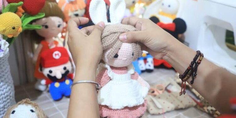 Seperti yang dilakukan oleh Dwi Prasetyawati, pelaku usaha Dwi Lim Craft yang mulai menekuni kerajinan tangan rajutan sejak 2018. Saat itu dirinya yang sudah tak lagi bekerja, akhirnya memutuskan untuk menggeluti usaha kerajinan tangan dari rajutan.