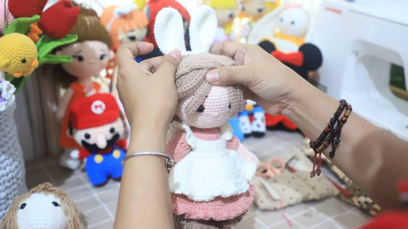 Dwi pun menerangkan, kini tak hanya produk fesyen yang ia buat, namun merambah ke produk boneka yang kini paling banyak dicari. Menariknya, Dwi Lim Craft dapat menerima pemesanan boneka dari benang rajut untuk berbagai karakter.