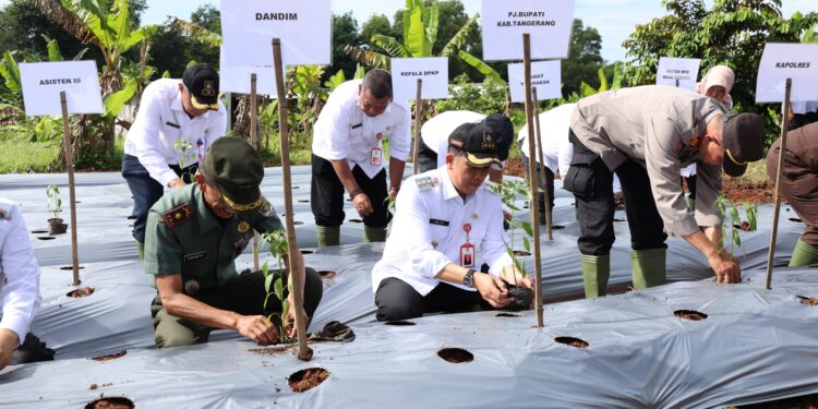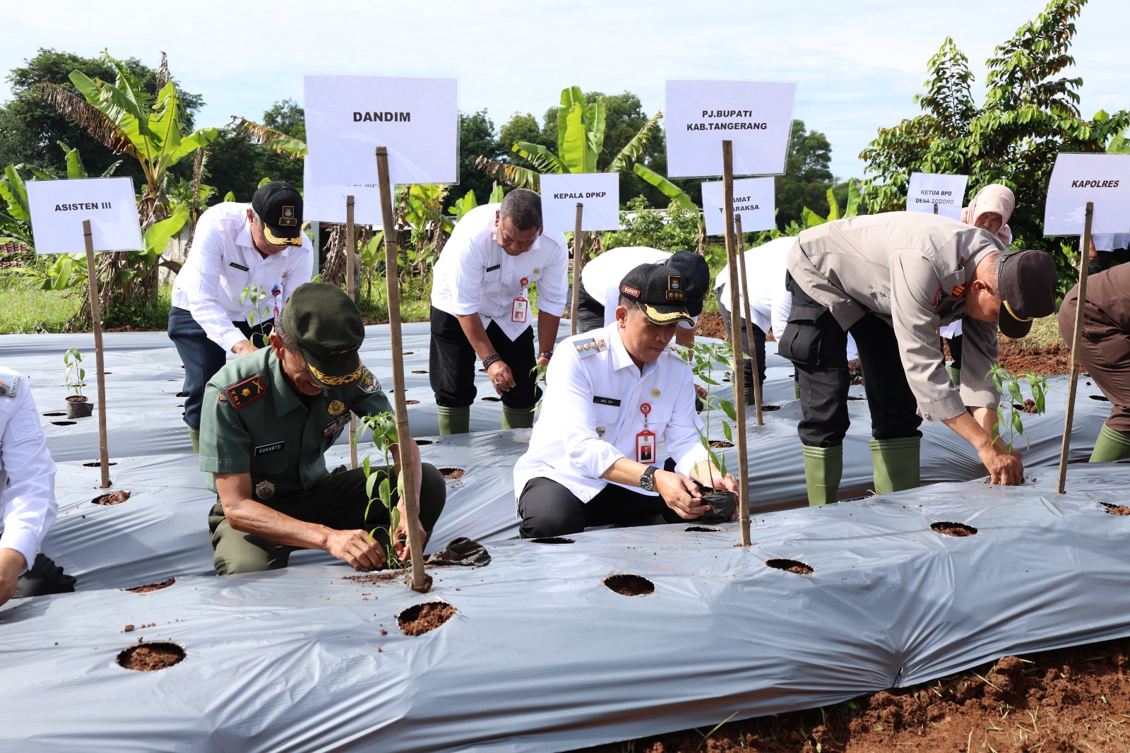 Setelah apel, Pj Andi Ony beserta seluruh peserta apel melakukan tanam cabe di lokasi Eduwisata Desa Sodong.