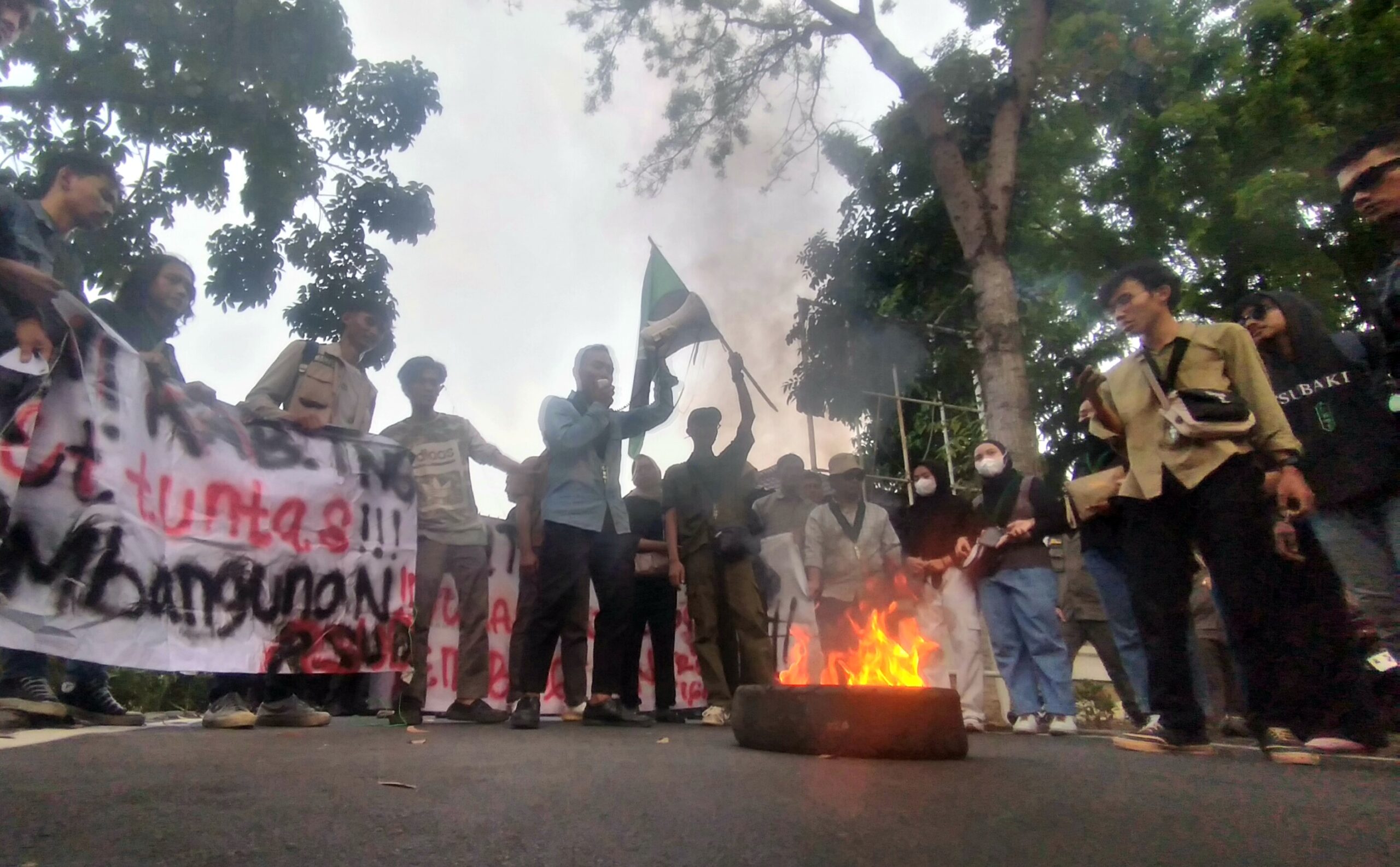 Mahasiswa dalam orasinya mendesak Kejari segera mengungkap kerugian negara dan menetapkan para pelaku korupsinya.