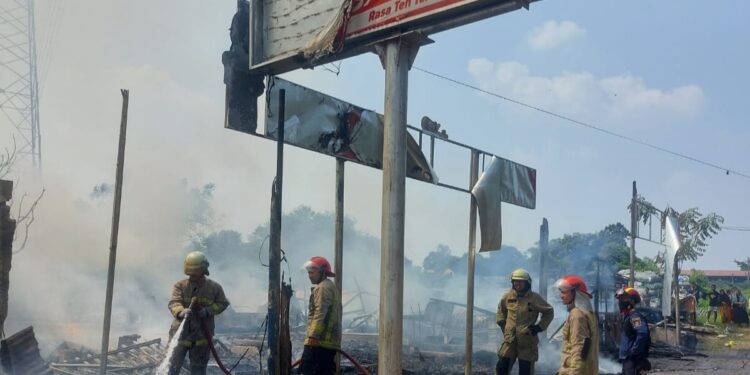 Redaksi Banten – Rumah makan Saung Babeh dan 4 lapak buah di Jalan Aria Wasangkara RT 007/002 Kampung Bugel, Kelurahan Kedaung Kecamatan Tigaraksa Kabupaten Tangerang ludes dilalap api. Jumat (12 Juli 2024)