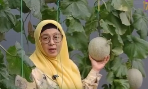 Selain berdiskusi dengan petani milenial, Intan Nurul Hikmah juga mencicipi sensasi manisnya buah melon di Melonial Hydro Farm tersebut.