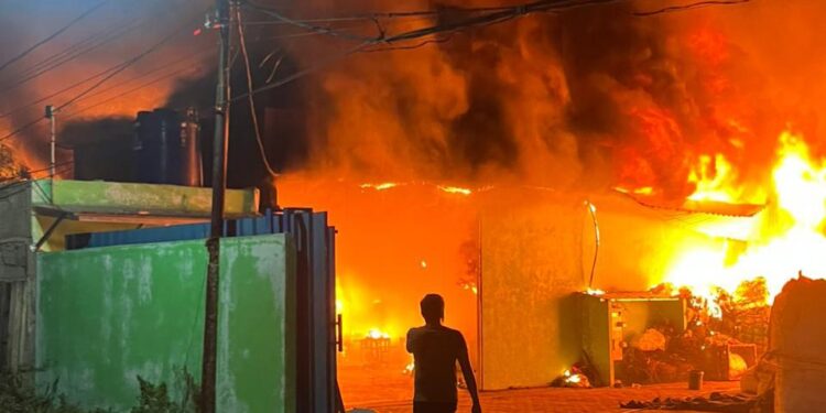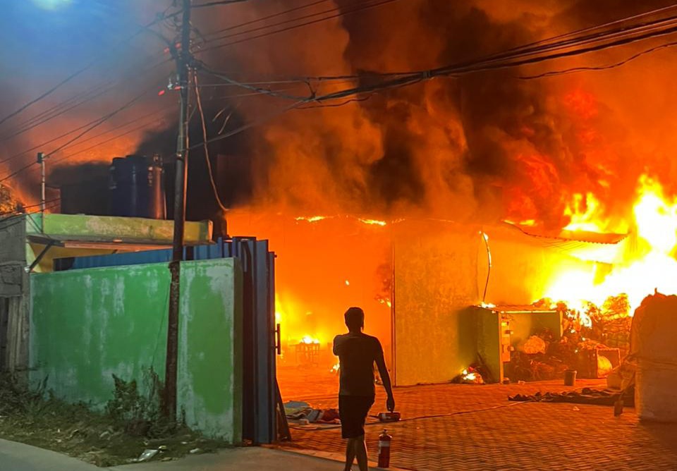 Kebakaran menyebabkan dua bangunan tempat usaha pengelohan plastik milik Martin tersebut ludes dilalap api pada Rabu (22 Oktober 2025) Pukul 00:37 WIB.