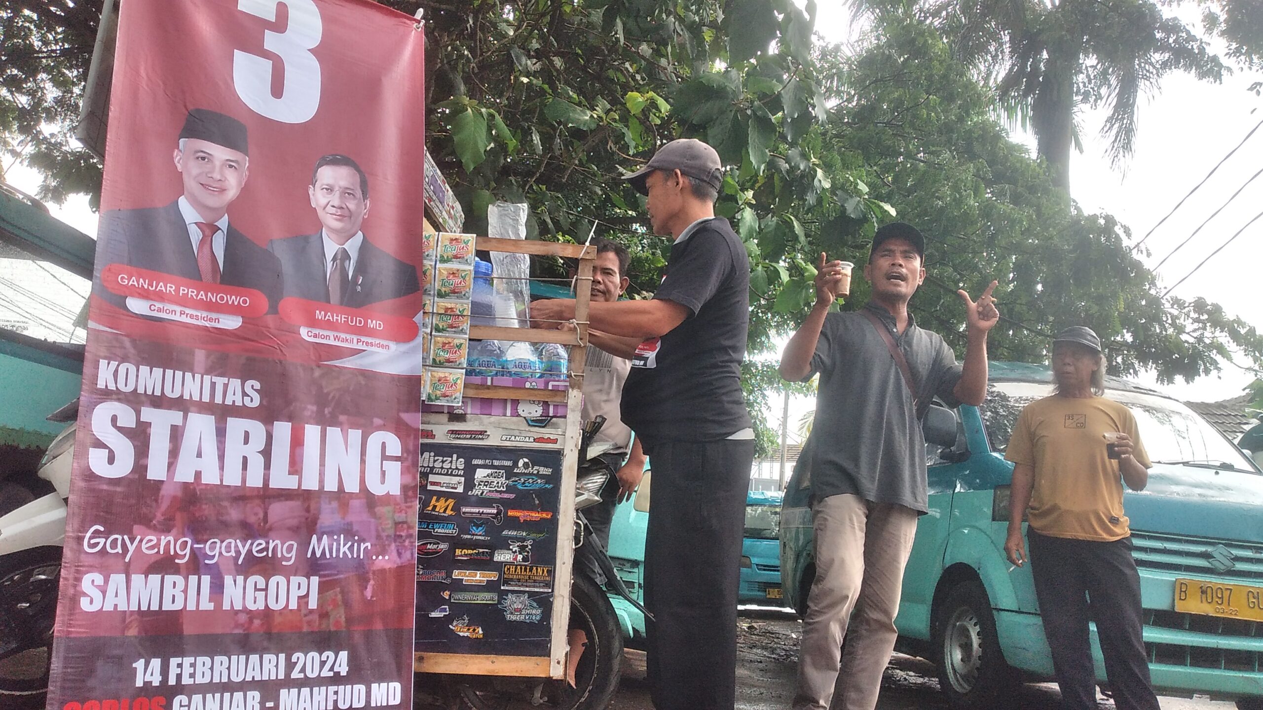 Agus (45), salah seorang komunitas Starling Kabupaten Tangerang mengaku bahwa ini bukan kali pertama dia membagi-bagikan kopi gratis kepada masyarakat. Kegiatan ini menurut Agus adalah salah satu bentuk dukungan dan simpatiknya terhadap pasangan calon presiden dan wakil presiden nomor urut 03 Ganjar-Mahfid. MD.