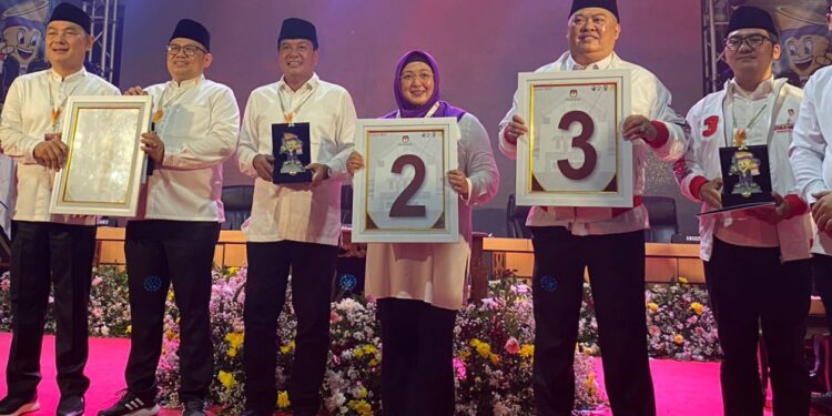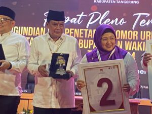Redaksi Banten– Pengundian dan penetapan nomor urut pasangan calon Bupati dan Wakil Bupati 2024 pada rapat pleno terbuka KPU Kabupaten Tangerang pasangan Moch. Maesyal Rasyid dan Intan Nurul Hikmah mendapatkan nomor urut dua. Senin (23 September 2024)
