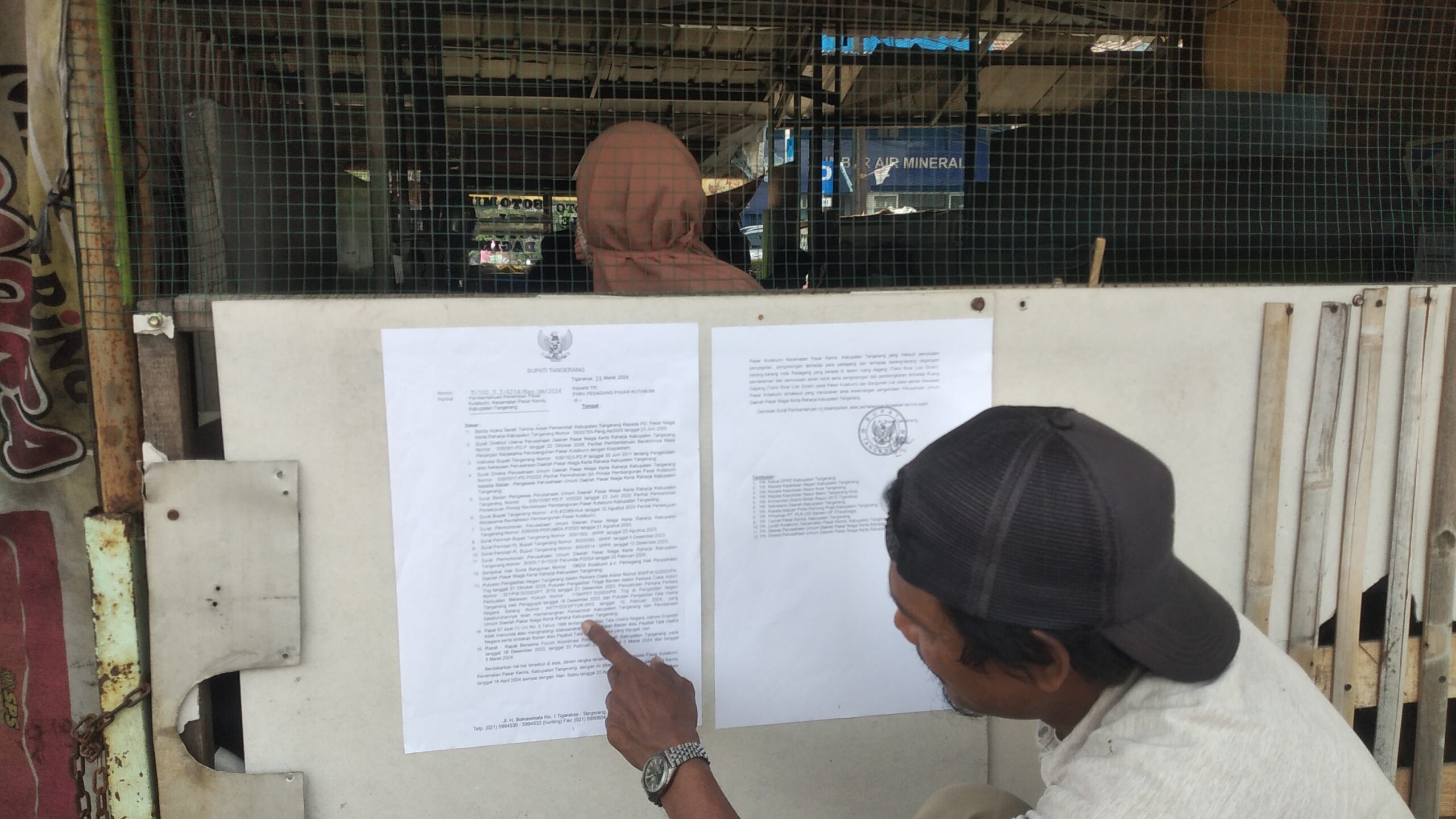 Redaksi Banten – Perumda Niaga Kerta Raharja (NKR) menyampaikan surat Pj.Bupati kepada para pedagang Pasar Kutabumi Kecamatan Pasar Kemis Kabupaten Tangerang yang masih bertahan di pasar lama untuk segera bergabung di Tempat Penampungan Pedagang Sementara (TPPS). Kamis (28 Maret 2024)