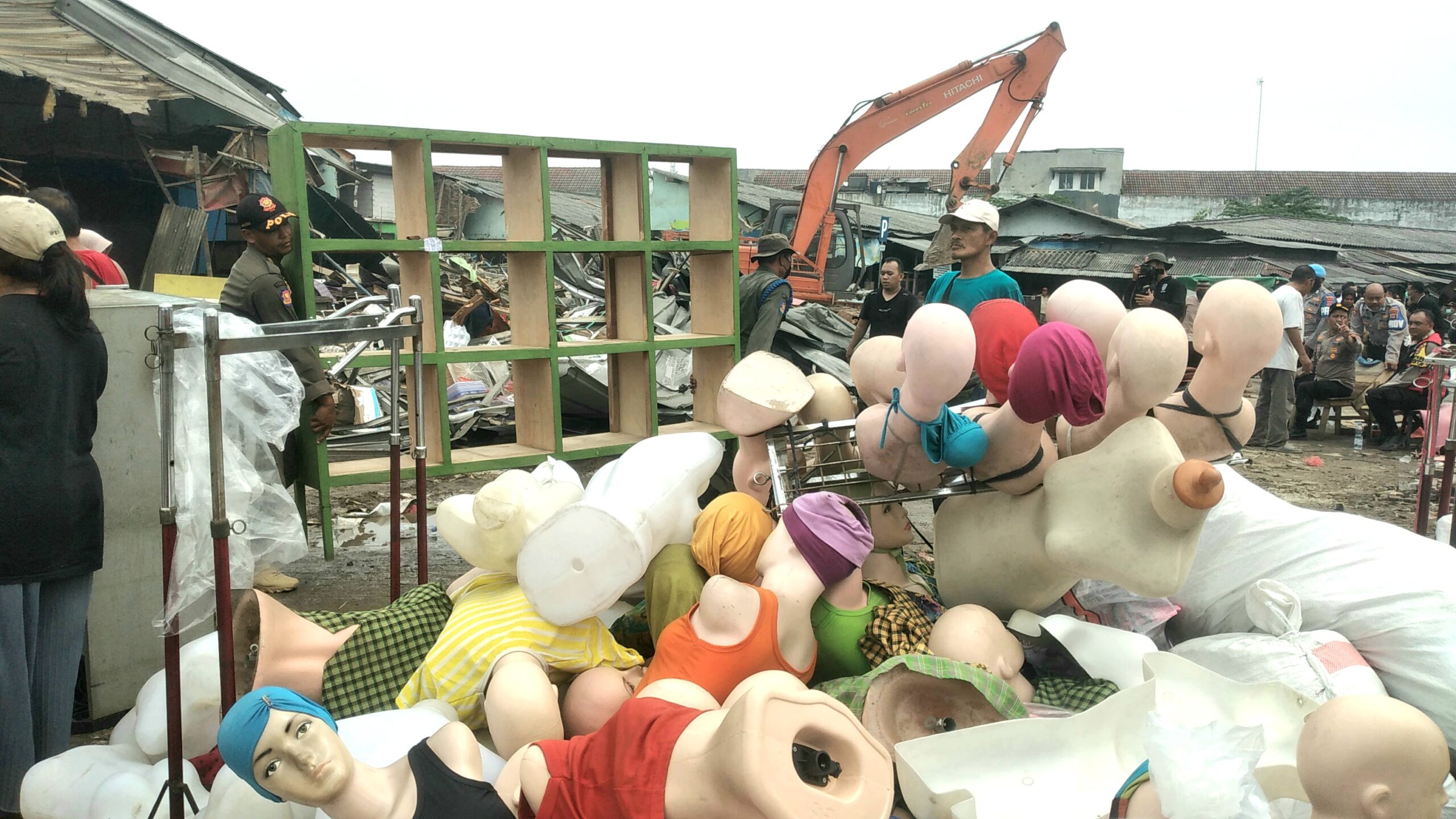 Pasar Kutabumi Dirobohkan, Pedagang Evakuasi Barang Dagangan