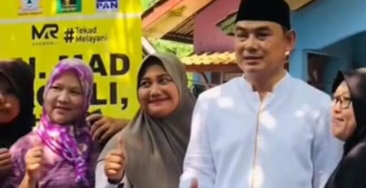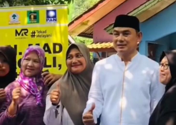 Dalam video Tik Tok dari akun Barudak MR tampak Ia berfoto bersama dengan sejumlah ibu-ibu berlatar belakang baliho wajahnya dan tiga logo partai diatasnya.