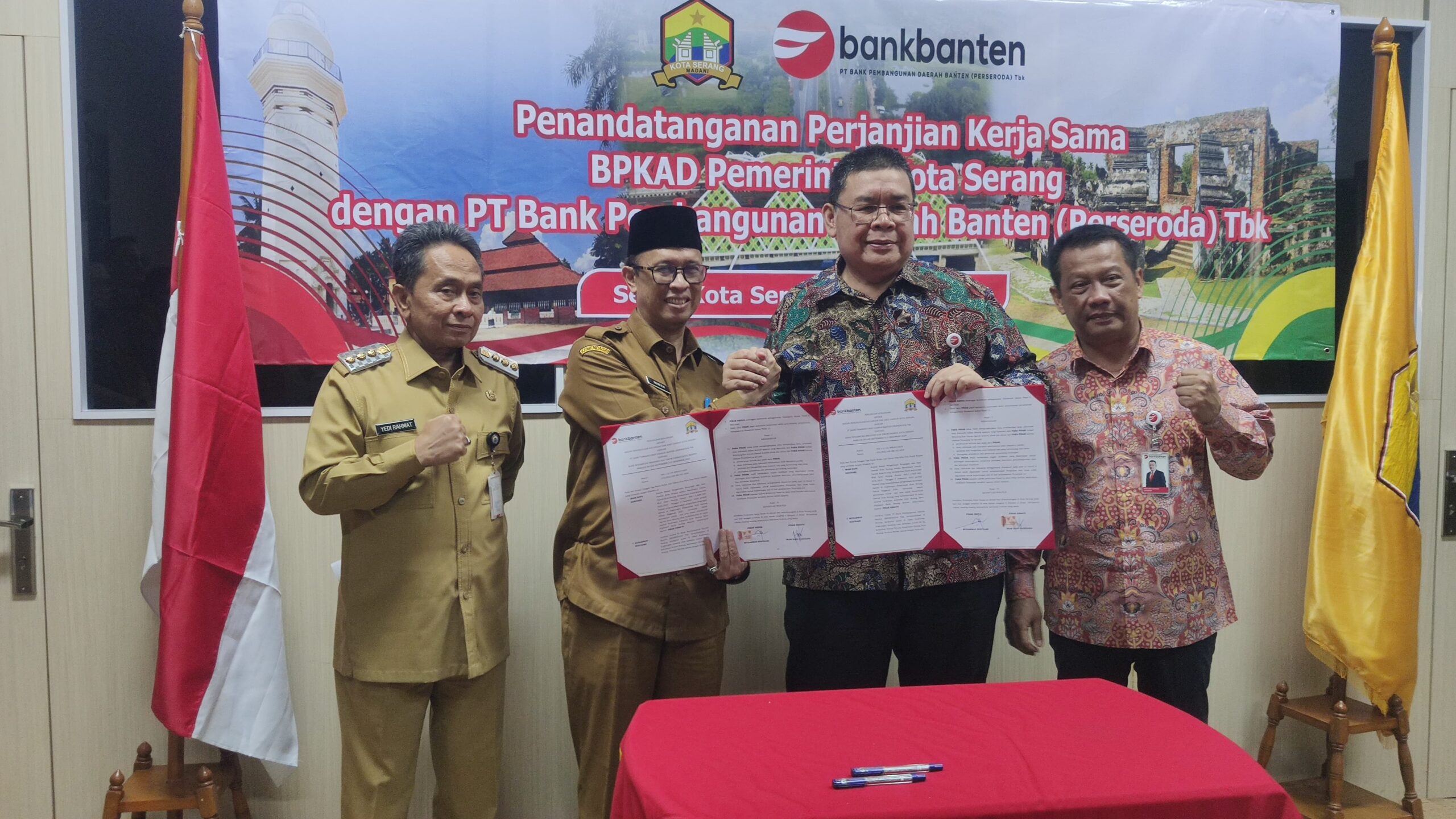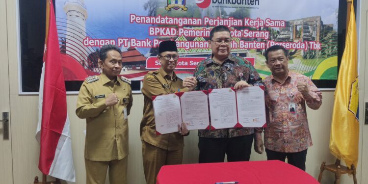 Redaksi Banten – Pemerintah Kota Serang secara resmi telah memindahkan Pengelolaan Rekening Kas Umum Daerah (RKUD) Pemkot Serang kepada Bank Banten melalui Perjanjian Kerjasama (PKS) yang dilakukan oleh Kepala Badan Pengelolaan Keuangan dan Aset Daerah (BPKAD) Kota Serang Imam Rana dan Direktur Utama Bank Banten Muhammad Busthami, dan juga disaksikan langsung oleh Penjabat (Pj) Walikota Serang Yedi Rahmat di Ruang Rapat Walikota Serang, Setda Kota Serang, KSB, Kota Serang, Selasa (30 Juli 2024).