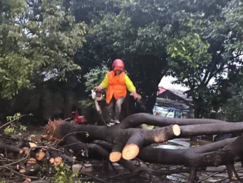 Menyikapi kondisi tersebut, petugas gabungan dari Bidang Pertamanan Disbudpar, BPBD Kota Tangerang, Dinas Lingkungan Hidup (DLH), Dinas Perhubungan (Dishub) bergerak cepat melakukan evakuasi dan pembersihan material pohon tumbang.