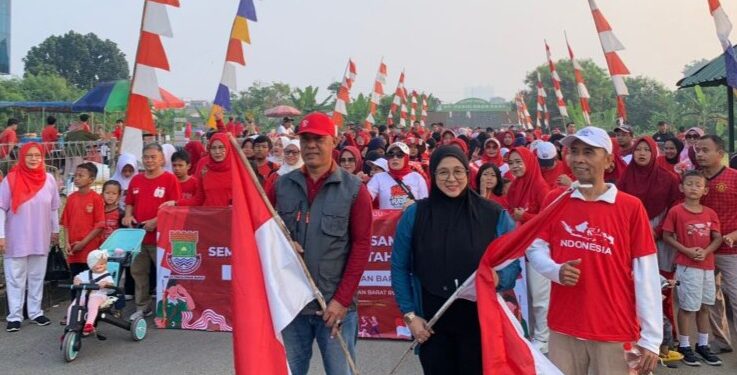 Redaksi Banten – Ketua Persatuan Wanita Olahraga Seluruh Indonesia (Perwosi) Kabupaten Tangerang, Intan Nurul Hikmah melepas ratusan peserta gerak jalan bersama warga Pakulonan Barat, Kecamatan Kelapa Dua, Minggu (18/8/2024).
