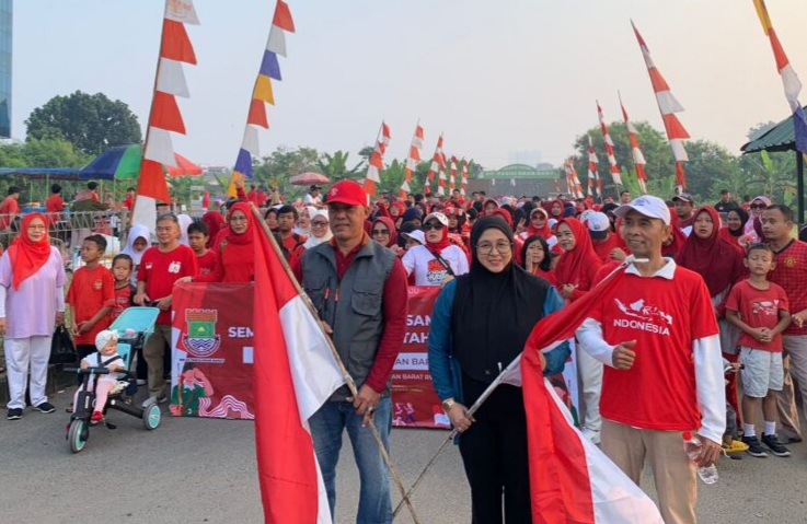 Gerak jalan bersama ini digelar oleh warga RW 03 Pakulonan Barat, Kecamatan Kelapa Dua dalam rangka memeriahkan HUT ke-79 RI.