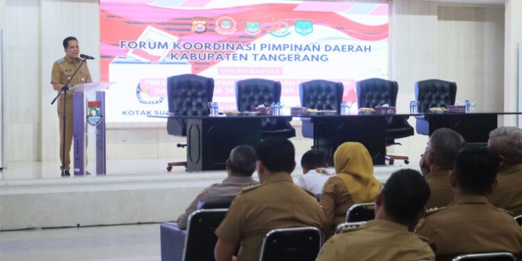 Redaksi Banten – Pemerintah Kabupaten (Pemkab) Tangerang menggelar Forum Koordinasi Pimpinan Daerah (Forkopimda) terkait persiapan tahapan pendaftaran bakal calon untuk Pilkada 2024 di Gedung Serbaguna (GSG), Puspemkab Tangerang, Tigaraksa, Selasa (6/8/2024).