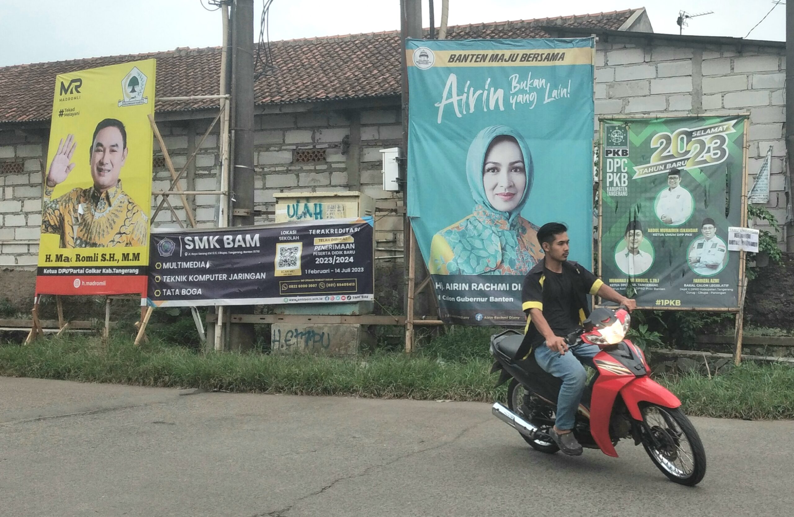Redaksi Banten – Meskipun pemilu akan digelar tahun 2024 namun banyak spanduk-spanduk politik bertebaran menghiasi sepanjang jalan utama.