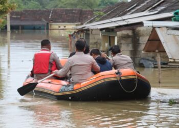 Banjir di Jayanti, Polresta Tangerang Kirim Tim Medis Menggunakan Perahu Karet Redaksi Banten,- Polresta Tangerang menerjunkan tim medis dari Dokkes ...