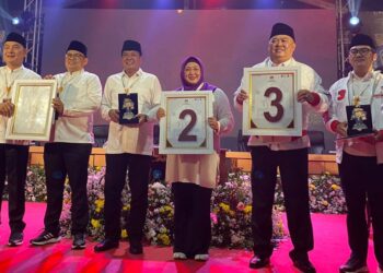 Redaksi Banten- Pengundian dan penetapan nomor urut pasangan calon Bupati dan Wakil Bupati 2024 pada rapat pleno terbuka KPU Kabupaten ...