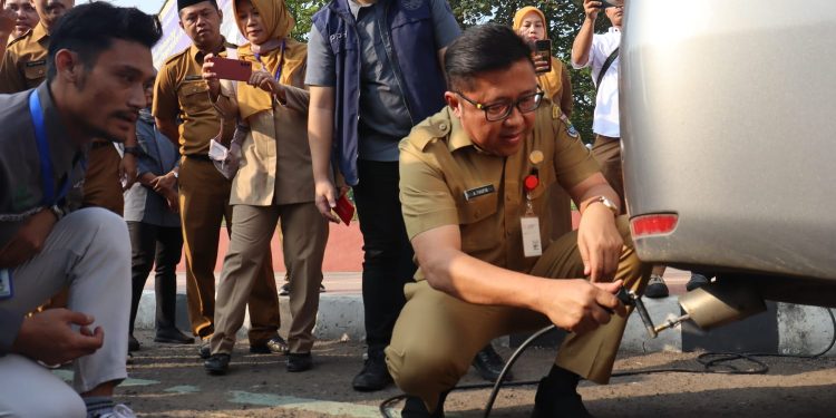 Uji Emisi Mobil Dinas Bupati dan Sekda Diperiksa Redaksi Banten - Dinas Lingkungan Hidup dan Kehutanan (DLHK) memeriksa kondisi emisi ...
