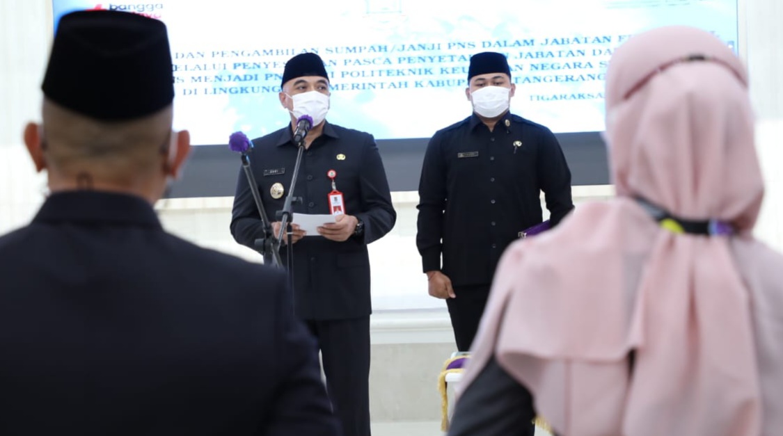 Bupati Zaki Lantik Jabatan Fungsional Dan PNS Redaksi Banten-Bupati Tangerang Ahmed Zaki Iskandar melantik dan mengambil sumpah jabatan fungsional dan ...